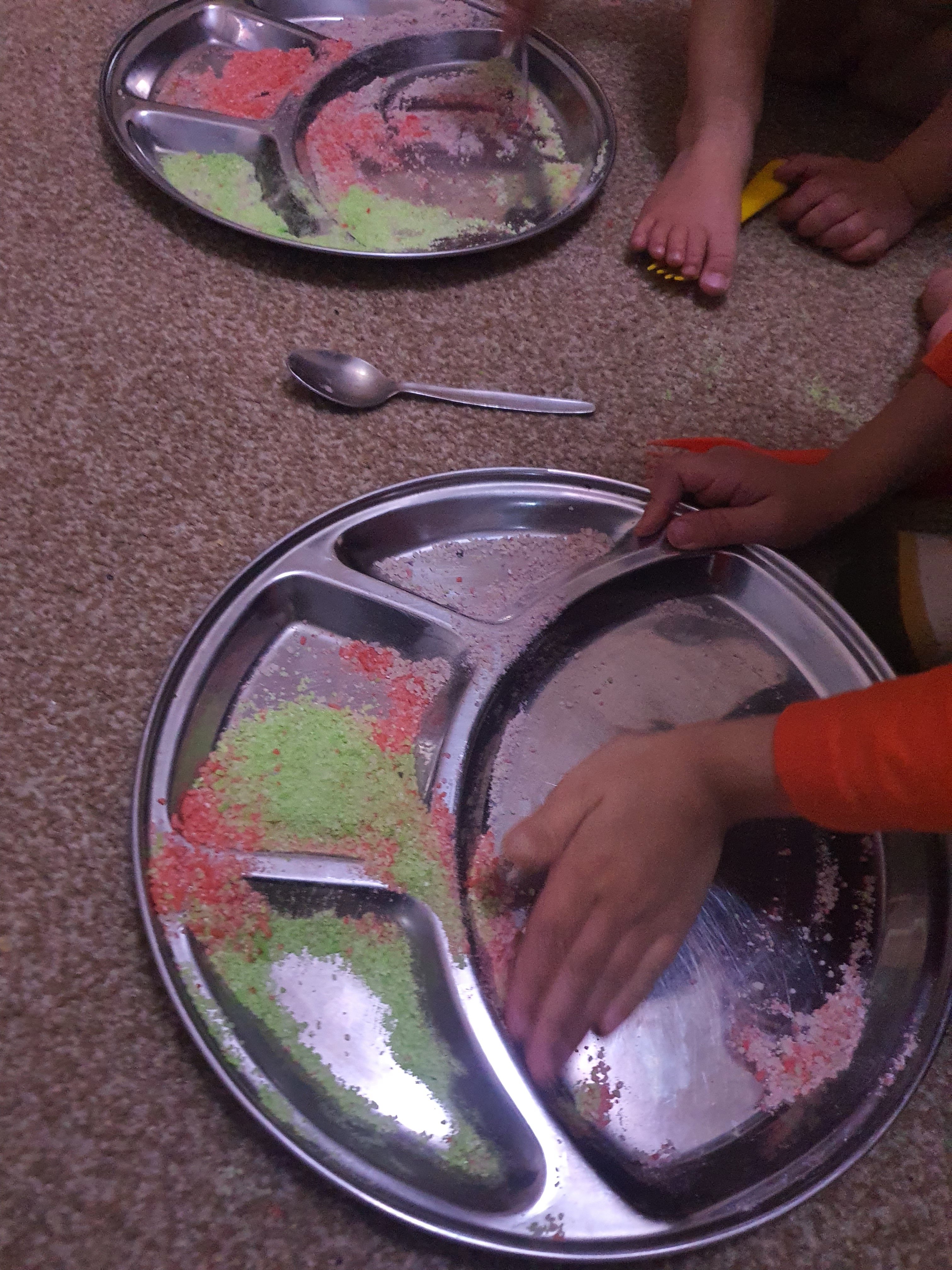 We spoke about the pooja, the milk, water, rice and petals. We also gave thanks to the earth and world we live in ( a nightly ritual now) and before bed, I saw him holding our Arti dish by the door and circling it just as we had done together for the pooja.