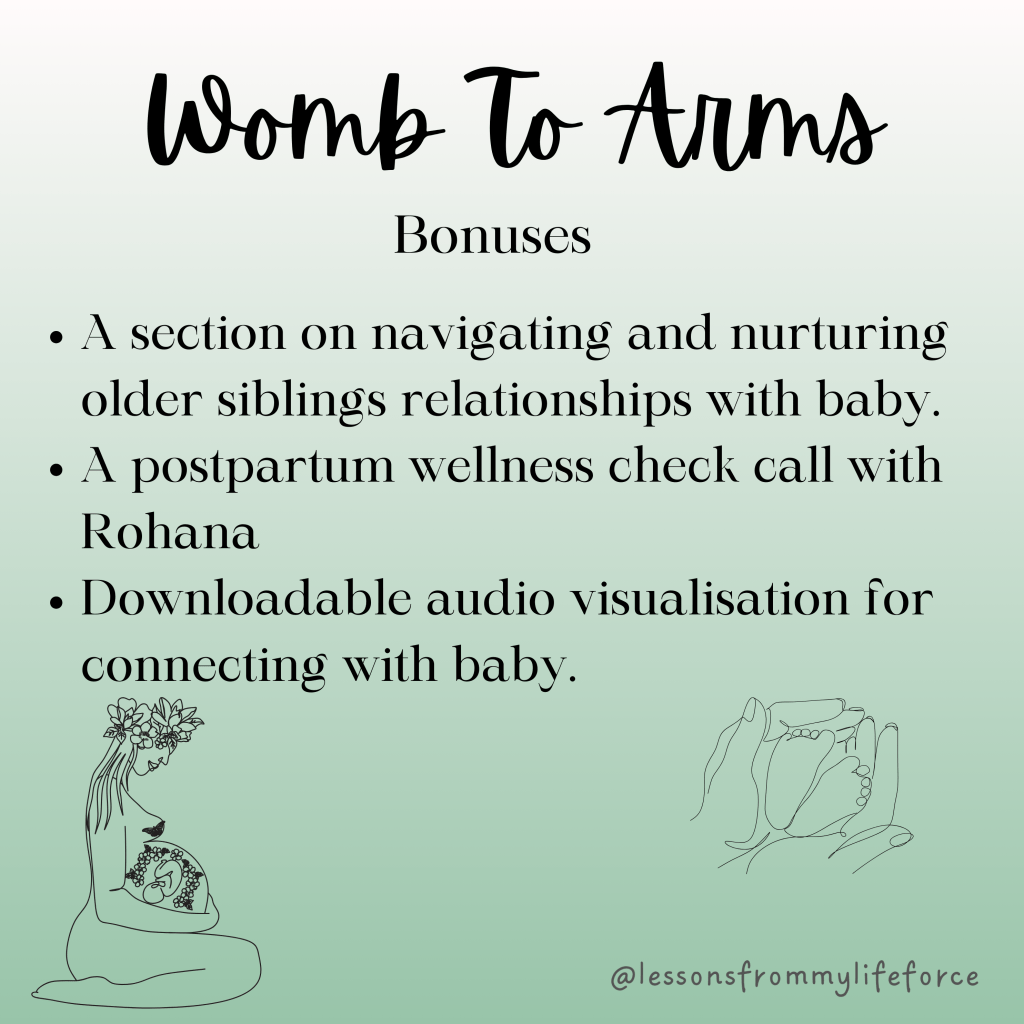 Bonus 3: Subject to availability, a birth debrief/postpartum check in with me (Rohana)